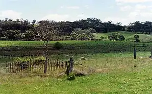 ![]() The lonely Hush burial ground on Eastfield, Ralph Hush's farm in Braidwood | |