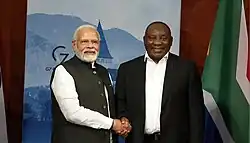 In the 2007–2008 Kenyan crisis, which followed the disputed re-election of President Mwai Kibaki in December 2007, Ramaphosa was unanimously chosen by Kofi Annan's mediation team to be the chief mediator in charge of long-term talks. However, Kibaki's government protested Ramaphosa's involvement, saying that he had business links with Kibaki's opponent Raila Odinga.[42] According to Ramaphosa, Odinga had visited him in 2007, but he did not have any "special interest" that would lead him to favour one side or the other;[43] however, he said that he could not be an effective mediator without "the trust and confidence of all parties" and that he did not wish to become an obstacle to the negotiations.[44] He therefore withdrew from the talks on 4 February.[42] However, he returned to a peacemaking role in 2014, when – in his capacity as Deputy Chairperson of the National Planning Commission – he served as the South African President's Special Envoy to South Sudan during the South Sudanese civil war.[45]
