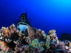 Kosaki specializes in the use of advanced dive technology, such as closed-circuit rebreathers, that allow him to explore the mesophotic zone (150–330 ft. depths).[9] Kosaki was involved in finding a new invasive algae species, Chondria tumulosa, at Papahānaumokuākea Marine National Monument in 2016.[10][11]