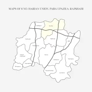 ![]() ![]() ![]() ![]() ![]() ![]() Clockwise from top: Maps of Harian Union, A Sunset in Ranhat Bado Beel, Transportation through Ranhat Bypass, Irritations from Deep Water Pump, Green Paddy Fields and Ranhat Ashraaf-er Mohr | |