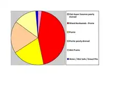 The Sheyenne River meanders through Ransom County. The county terrain consists of rolling hills, dotted with lakes and ponds in its western part. The area is largely devoted to agriculture.[5] The terrain slopes to the east and south; its highest point is on the north boundary line near its northwestern corner, at 1,421 ft (433 m) ASL.[6] The county has a total area of 864 square miles (2,240 km2), of which 862 square miles (2,230 km2) is land and 1.4 square miles (3.6 km2) (0.2%) is water.[7]