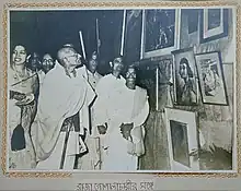 Lady Ranu Mukherjee founded the Academy of Fine Arts in Kolkata, in 1933, although it was around 1952, that construction of the present building began. Ranu Mukherjee contributed to the Academy, the series of paintings and artworks that her family had, and which she herself had inherited. The special Rabindra Gallery, included her photographs at the time of Shantiniketan, manuscripts of Tagore's Bhanusingha Thakurer Padabali, etc.[9][10] In this initiative she was supported by the then Chief Minister of Bengal, Dr. Bidhan Chandra Roy, and her illustrious husband, Sir Birendranath Mukherjee. The Academy under her able trusteeship became the city's epicentre of arts and culture, and one of the most important art societies of India.[9] She remained the President of the Academy till 1997. Besides, she also maintained a close connection, and held respectable positions at Lalit Kala Academy, Indian Museum in Kolkata, Calcutta University, Benaras Hindu University, Asiatic Society, Rabindra Bharati University, etc. She was awarded the Légion d'Honneur by the French Government.[1][4]