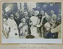 In 1925, Ranu was married to Sir Birendranath Mukherjee,[4] a famous Indian industrialist. With a mature perception of art and culture, coupled with finer abilities that she had acquired under Tagore's mentorship at the Shantiketan school, she fittingly became Lady Ranu Mukherjee, the Grand Dame of Bengal.[7] However, after having married to a rich family, the relationship between the poet and his muse got disrupted. The poet realised more than anyone else, that Ranu now belonged to a milieu that is less sensitive to poetry and art, and hence he wrote: “Ranu, please do not call me Bhanu Dada any more. Bhanu Singha is lost forever. He cannot be brought back.”[2][8]