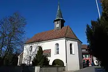 Prehistorically, two fortifications existed within the borders of Raperswilen. Risi was a Bronze Age fort while Schanz was probably from the Iron Age. The modern village of Raperswilen is first mentioned in 1227 as Raperswilar.[3] Büren and Müllberg hamlets belonged to the court of Klingenberg, while a part of Fischbach, Helsighausen and Raperwilen belonged to the court of Fruthwilen. Four houses in Fischbach belonged to the court of Hattenhausen and another six homes were directly under the Swiss Confederation Vogt in Thurgau. Raperswilen and Helsighausen are first mentioned together in 1616.[3]