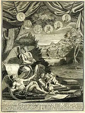 In 1701, Bentinck resigned all his offices in the royal household. A parliamentary enquiry found him guilty of high treason for his role in the secret negotiations over the Treaty of The Hague (1698). The House of Commons' dubious conviction was overturned by the House of Lords. However, he lost all his Irish estates after a critical report by a parliamentary committee.[7] Travelling with his 19-year-old pupil between 1701 and 1703 to Hanover, Vienna and Toscane, both parties sent letters to Bentinck.[8] Numerous letters shed light on the preparation of the voyage, the problematic relationship between the teenager and his teacher.[9] Sophia of Hanover admired the guy.[10] After 1704 – when Henry married – de Rapin started secretly a new project, writing a new, impartial history of England.