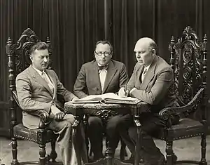 In the 1923 election, Skipitis was elected to the Second Seimas (parliament) as a candidate of the Lithuanian Popular Peasants' Union.[1] In 1925, Santara was reorganized as the Farmers' Party and Skipitis became its chairman and editor of its weekly newspaper Ūkininkų balsas (Voice of Farmers). He was elected in the 1926 elections to the Third Seimas as a candidate of the Farmers' Party.[1] During the 1926 coup d'état, Skipitis and Vaclovas Sidzikauskas mediated between the deposed government and the new regime of Antanas Smetona, taking care to observe constitutional formalities.[12] In the new government of Augustinas Voldemaras, Skipitis was offered the post of Minister of the Interior, but refused.[3] After the coup, Seimas was dissolved in 1927 and the Farmer's Party was banned in 1928.[1]