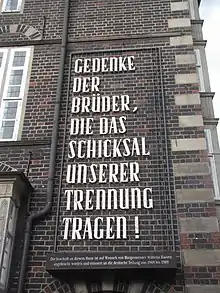 admonishing words of Wilhelm Kaisen, was attached to the market side in 1955. In March 2011, the inscription was given as a loan for one year to an exhibition in the Haus der Geschichte (house of history) in Bonn.