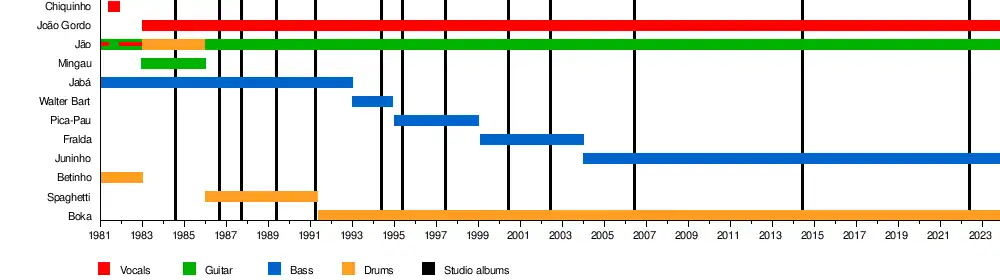 | Past members | Betinho Mingau Jabá Walter Bart Pica-Pau Fralda Spaghetti Chiquinho |