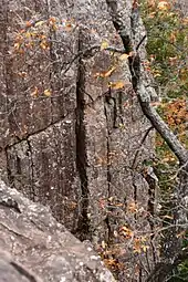 Rattlesnake Mountain is a traprock mountain, 750 feet (230 m) above sea level, located 9 miles (14 km) southwest of Hartford, Connecticut, in the town of Farmington. It is part of the narrow, linear Metacomet Ridge that extends from Long Island Sound near New Haven, Connecticut, north through the Connecticut River Valley of Massachusetts to the Vermont border. Rattlesnake Mountain, a popular outdoor recreation resource of the metropolitan Hartford area, is known for its cliff-top scenic vistas, unique microclimate ecosystems, and rare plant communities. Will Warren's Den, a boulder cave located on the mountain, is a local historic site. Rattlesnake Mountain is traversed by the 51-mile (82 km) Metacomet Trail.[2][3][4]
