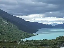 Rauddalsvatnet is a lake in Skjåk Municipality in Innlandet county, Norway. The 7.4977-square-kilometre (2.8949 sq mi) lake lies just outside the Reinheimen National Park (which surrounds the lake on three sides. The lake sits at an elevation of 916 metres (3,005 ft) above sea level and it has a perimeter of 22.23 kilometres (13.81 mi). The lake sits in a narrow valley with the mountain Skridulaupen to the north and Dyringshøi to the south. The lake lies in an isolated valley, about 25 kilometres (16 mi) west of the village of Bismo.