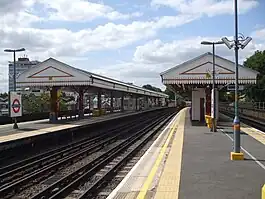 The station has four tracks serviced by two island platforms. The outside tracks are used by the District line. The Piccadilly line uses the inside tracks, but does not stop here except on rare occasions, such as engineering works taking place on other sections of the District line, and during all-night services on New Year's Eve. London Assembly member Murad Qureshi has called for Piccadilly line trains to stop at Ravenscourt Park on a regular basis.[6]