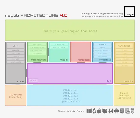 Raylib consists of several modules that are exposed to the programmer through the API.