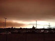 The Esperanza Fire was a large, wind-driven, arson-caused wildfire that started on October 26, 2006, in a river wash near Cabazon, California, west of Palm Springs, California. By October 29, 2006, it had burned over 41,173 acres (166.62 km2) (or 61 square miles (160 km2)) and was 85% contained. On October 30, 2006, the fire was fully contained.