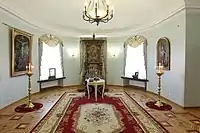 The interiors of the second floor have been restored in analogy to the surviving works of Charles Cameron. In the ceremonial halls of the second floor, the focus is on the era of the hetmanate.[3]