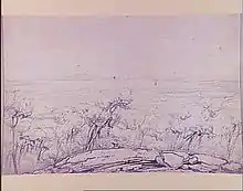 A drawing from the Westall collection with the title "Middle Island, view north to Cape Arid".