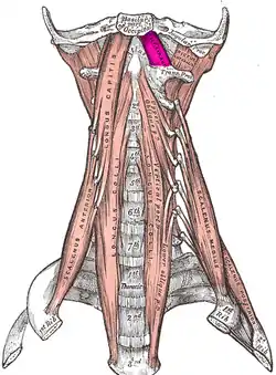action: aids in flexion of the head and the neck; nerve supply: C1, C2.[1]