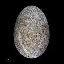 This tropicbird usually lays a clutch of one white buff to pale purple egg with reddish-brown spots. The egg usually measures 45 by 60 millimeters (1.8 by 2.4 in) and weighs around 67 grams (2.4 oz)—10% of the adult female's weight.[22] It is incubated by both sexes for 42 to 46 days. If the egg does not survive the first few days in the nest, the female will usually lay a replacement egg.[15] The chicks that hatch eventually fledge in about 10 to 15 weeks after hatching,[36] although most fledge after about 80 to 90 days.[10] Normally, the maximum weight of the chicks is about 725 grams (1.6 lb), but on years that are hotter than average, this can drop to about 600 grams (1.3 lb).[36]