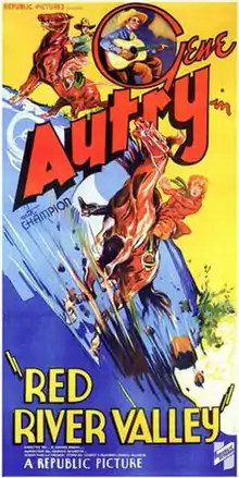 Red River Valley, later retitled Man of the Frontier for American television screening, is a 1936 American Western film directed by B. Reeves Eason and starring Gene Autry, Smiley Burnette, and Frances Grant. Written by Dorrell and Stuart E. McGowan, the film is about a "ditch rider" and his sidekick who set out to find out who has been causing the accidents at a dam construction site.[1]