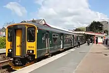 Redruth station (Cornish: Redrudh) serves the town of Redruth, Cornwall, United Kingdom, and is situated on the Cornish Main Line between Truro and Camborne. The station is 309 miles 68 chains (309.85 mi; 498.7 km) from the zero point at London Paddington measured via Box and Plymouth Millbay.[1]