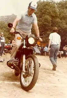 ![]() Pridmore riding a 1982 R80G/S in the Slow Race at the 1982 South Coast BMW Riders Club Fiesta Rally | |