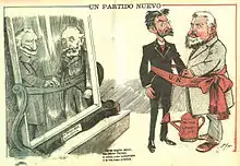 At the head of the Agrarian League was Germán Gamazo, Minister of Overseas Territories in Sagasta's government, although his actions responded more to the interests of the faction of political friends that he headed, than to the pressure of the agrarian landowners grouped in the League.[40] This is what explains why the "gamacistas" did not support the protectionist movement until the summer of 1888 —despite the fact that it had begun much earlier— using it in the political operation of harassment of Sagasta by various liberal factions, and that they put a stop to it when in the summer of the following year they sought an agreement with Sagasta.[41]