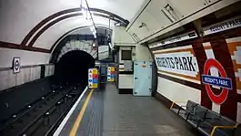 The station was opened on 10 March 1906[6] by the Baker Street and Waterloo Railway (BS&WR); in the original parliamentary authority for the construction of the BS&WR no station was allowed at Regent's Park. Permission was granted to add it to the already partially constructed line in 1904.[7] In 1983, London Transport proposed to close the station on the basis that the passenger lifts, which at the time were 77 years old, needed to be replaced at a cost of more than £3 million.[8] The proposal was dropped following a request by the GLC for the matter to be reconsidered.[8]