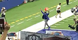 Wayne attended the University of Miami, where he was a four-year starter for the Hurricanes.[7] He set a school record of 173 career catches (including 36 consecutive games with a reception).[8] He is one of only five wide receivers in school history to post 20 or more touchdowns in his career, along with Michael Irvin, Lamar Thomas, Leonard Hankerson, and Andre Johnson. Wayne's 48 receptions during the 1997 season set a school record for freshmen, which still stands today. Wayne also ran track and field at the University of Miami, where he recorded a personal best of 21.87 seconds in the 200 meters. Wayne graduated with a degree in liberal arts; his roommate was future Baltimore Ravens safety Ed Reed.[9][10] Wayne was also teammates with future Indianapolis Colts teammate Edgerrin James while at 'The U'.[11]