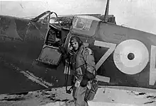 Hyde was appointed as an instructor at No. 52 Operational Training Unit (OTU) in Grangemouth in July.[1] Promoted to warrant officer in October, he was mentioned in despatches in the 1942 New Year Honours for his services with the OTU.[9][10] In January 1942 he was commissioned as a pilot officer and three months later was transferred to No. 55 OTU, instructing pilots on Spitfires.[1][11]