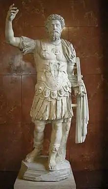 Fronto sent Marcus a selection of reading material, and, to settle his unease over the course of the war, a long and considered letter, full of historical references.[73] In modern editions of Fronto's works, it is labeled De bello Parthico (On the Parthian War). There had been reverses in Rome's past, Fronto writes, but, in the end, Romans had always prevailed over their enemies: "always and everywhere [Mars] has changed our troubles into successes and our terrors into triumphs".[74][75]