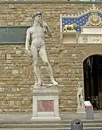 Replica of David in the sculpture's original position, in front of the Palazzo della Signoria, Florence