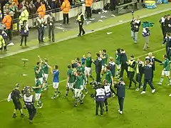 On 9 October 2017, Ireland defeated Wales 1–0 in Cardiff to qualify for the qualification play-offs after a James McClean goal fired Ireland to second place in the group.[66] They went on to play Denmark in the play-offs.[67]