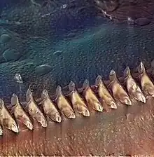 Katydids and their relatives in Ensifera use modified areas of the fore-wings, called stridulatory files, to produce broadband and pure sound which is used for mate location. The two wings are vibrated against each other, and the files produce specific tones, which are amplified as they pass across certain wing cells.[5] The known wings of Republicopteron are all lacking stridulatory files, possibly indicating that they did not "sing", or sing using the same means as other Ensiferans.[2]