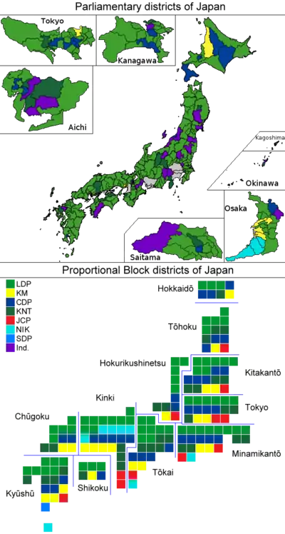 | Yamaguchi 4 | Shinzō Abe | L | Reelected | Shinzō Abe (L – K) 72.6% Tokio Fujita (Kibō) 12.9% |