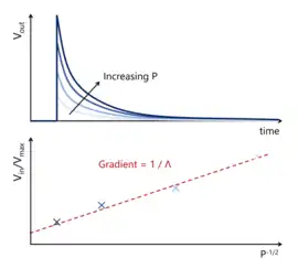 With this parameter, the inverse ratio of peak height to input voltage can be written as follows: