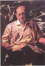 In September 1974, Rodón began the portrait in Muñoz Marín's residence in Trujillo Alto. The sessions lasted until the end of that year.[2] The portrait helps appreciate the personal style of Rodón, that despite his travels and studies abroad resisted identification with any particular style.[3] According to Muñoz Marin, "The picture captured the feeling of a phase of my life in which, recalling the past, I grieved not to have done or not being able to do much more than what I've done."[4][5]
