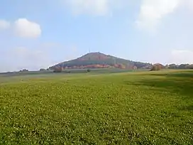 Near the peak, there is a sort of circular rampart, known as Alte Burg or Altenburg, with remains of both earth and masonry walls, long thought to date to the La Tène period. However, excavations in 2005 indicate that it most likely is a 10th-century refuge castle, with some elements added later (11th or 12th century). Over the centuries, locals have used the fortification as a source of construction materials, reducing the remains to just foundations.[1]