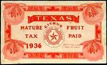 ![]() A 1936 Texas state revenue stamp for the tax on citrus fruit. |