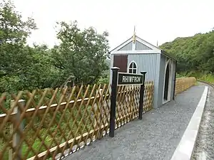 ![]() Rhiwfron railway station in 2013, with station building complete, but unpainted. | |