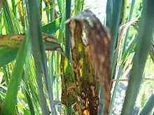 Rhynchosporium is a genus of fungi that causes leaf scald disease on several graminaceous hosts. It includes five currently accepted species: R. secalis from rye and triticale, R. orthosporum from Dactylis glomerata, R. lolii from Lolium multiflorum and L. perenne, R. agropyri from Agropyron, and R. commune from Hordeum spp., Lolium multiflorum and Bromus diandrus.[1][2] R. commune is one of the most destructive pathogens of barley worldwide, causing yield decreases of up to 40% and reduced grain quality.[3]