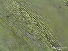 Rhynchostegium are small to large mosses that form either loose tuft or extensive mats on the substrate, with irregular or regular branching.[1][3] The younger plants are generally deep green or light green; aging plants could become whitish, brownish, or paler green.[1][3] Stems are creeping and lack hyaloderm, with acute to acuminate pseudoparaphyllia.[3] Stem leaves are erectopatent or erect.[1][3] Branch leaves are similar in morphology to stem leaves but smaller and sometimes narrower.[3] Leaves are commonly straightly to homomallously arranged; subimbricate, subcomplanate, or complanate arrangement are sometimes seen, especially in branch leaves.[1] Leaf base, decurrent or not, varies from ovate to ovate-cordate, occasionally lanceolate, and the narrowing from gradual to abrupt, towards a short- or long-acuminate apex, where sometimes a differentiated long acumen or apiculus is present.[1] The leaves have a single costa that generally smoothly ends 35-75% up the leaf, and more often in branch leaves in an abaxial spine.[1] Leaf surfaces vary from flat to slightly concave and not to strongly longitudinally plicate, with little to some pores and linear laminal cells.[1][3] Leaf margins are serrate to serrulate.[1][3] Axillary hairs constitute of 3-7 cells,[3] with 1-3 upper cells.[1] Alar cells are slightly enlarged, and either undifferentiated or quadrate to elongate-rectangular.[1][3]
