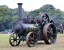 Later, a chain track was added to a heavy oil engined tractor. It had been developed by Hornsby's chief engineer and managing director, David Roberts: the track was patented in July 1904.[2] The following year Roberts demonstrated his tractor unofficially to the British Army's Mechanical Transport Committee, with a formal demonstration staged at Grantham in February, 1906, at which the machine outperformed a conventional wheeled tractor. A lightweight version of the tracks was also fitted to a Rochet-Schneider motor car.