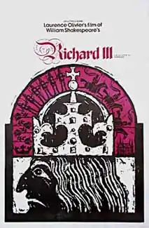 Of the three Shakespearean films directed by Olivier, Richard III received the least critical praise at the time, although it was still acclaimed. It was the only one not to be nominated for Best Picture at the Academy Awards, though Olivier's performance was nominated. The film gained popularity in the US through a 1966 re-release, which broke box office records in many US cities.[3] Many critics now consider Olivier's Richard III his best Shakespearean screen adaptation. The British Film Institute has pointed out that, given the enormous TV audience it received when shown in the United States on NBC, Sunday afternoon, March 11, 1956,[4] the film "may have done more to popularise Shakespeare than any other single work".[5]