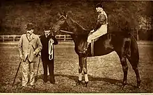 Marsh's first major success for his royal patron came with Persimmon. The colt won seven of his nine races including the Derby,[8] St Leger, Eclipse Stakes and Ascot Gold Cup. Persimmon's successes led Queen Victoria to pay her final visit to Royal Ascot after Marsh assured her (correctly) that the horse was sure to win.[9] Four years later, Marsh trained Persimmon's temperamental brother Diamond Jubilee to win the Triple Crown. Diamond Jubilee's wins enabled Marsh to win his third and final trainers' championship. The Prince continued his involvement in racing after coming to the throne as King Edward VII in 1901, although the numbers of his horses in training declined. Marsh gave the King his final major successes by sending out Minoru to win the 2000 Guineas and Derby in 1909.[10]