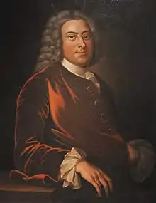 Richard Randolph (c.1691 – 1749),[nb 1] also known as Richard Randolph of Curles, was a planter, merchant and politician in colonial Virginia. Richard served as a member of the Virginia House of Burgesses from 1727 until his death.[3] Randolph was the fifth son of William Randolph and Mary Isham, as well as the Grandfather of John Randolph of Roanoke.[1][2] He was also recommended for appointment to the Governor's Council of Virginia four times but never received an appointment and through his marriage to Jane Bolling, his children were lineal descendants of Pocahontas.[5]