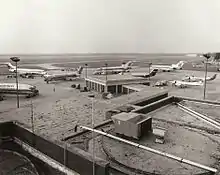 A terminal building designed by Marcellus Wright and Son was completed in 1950.[14] It was expanded from 1968 to 1970, which included the current passenger concourses.[15]