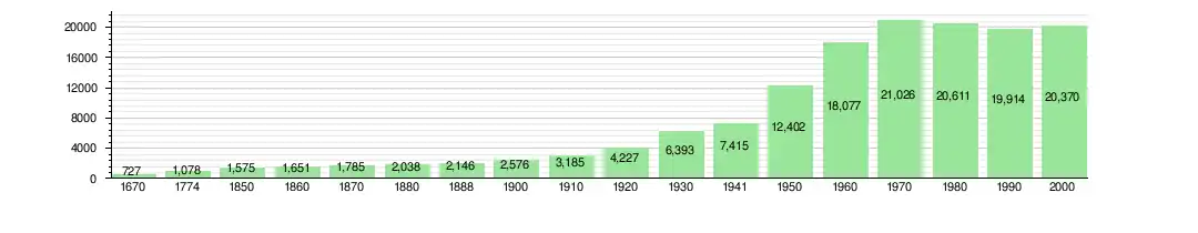 Riehen has a population (as of July 2021) of 21,788.[7] As of 2008, 18.3% of the population are resident foreign nationals.[8] Over the last 10 years (1999–2009 ) the population has changed at a rate of -0.2%. It has changed at a rate of 4.9% due to migration and at a rate of -4.9% due to births and deaths.[9]