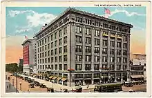 The company was established as the Rike-Kumler company in downtown Dayton, Ohio in 1853. They would remain independent until 1959 when they joined the Federated Department Stores company, at which time the company owned the then 650,000 sq ft downtown store, a 280,000 sq ft service building, two warehouses, and the Miami Hotel.[6] That same year, Arthur Beerman reportedly offered to sell his chain of Beerman stores to the company, but the offer was turned down by both the Rike-Kumler Co and its new parent, Federated. A branch store, the company's first, was announced as in the works in December 1960, and construction was underway by September 1961 for the new, self-service store in a newly built shopping center in Kettering, Ohio.[7][8] The store would have a soft opening on October 30, 1961, followed by a grand opening on November 2, 1961, with a number of local mayors and county officials in attendance.[9] The company would open its first mall store on August 22, 1963, at the Salem Mall in Trotwood, Ohio.[10] The company's downtown store was subject of picketing and sit-ins by the Congress of Racial Equality beginning in summer 1963, over alleged hiring discrimination at the store. The protest ended in October 1963, when CORE and the Rike-Kumler company reached an agreement, promising to hire more black workers, give them equal consideration in hiring, and making a pledge to bring on a number of black employees hired for the holiday season on as permanent employees.[11]