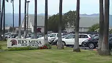 Rio Mesa High School (RMHS) is a high school in Ventura County, California. Located northeast of Oxnard, the school is surrounded by strawberry fields and other crops growing on the Oxnard Plain. The school is part of the Oxnard Union High School District (OUHSD) and serves a portion of northeast Oxnard (including the neighborhood of RiverPark) and western Camarillo as well as the unincorporated communities of El Rio, Strickland, and Nyeland Acres. The name "Rio Mesa", conceived by OUHSD board member Bob Matthews at the time of the school's founding in 1965, is derived from the two original elementary school districts that fed the school — Rio and Mesa Union; since then, it has also regularly received students from the Pleasant Valley and Oxnard Elementary districts. Rio Mesa High School offers the International Baccalaureate Diploma Program.