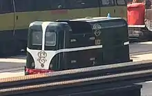 Greenbat, also known as U2, is one of many battery electric locomotives that were built in Leeds by Greenwood & Batley. This particular engine was built in 1957 for Thomas Marshall & Co. of Storrs Bridge Fireclay Mine in Yorkshire. Its builder’s number is 2872 and was originally built to an unusual gauge of 16 in (406 mm). When the mine closed, the engine was brought to Ravenglass in 1982, where the wheels were re-profiled to the Ratty's gauge and then became a versatile engine with which to shunt coaching stock. It awaits refurbishment at Ravenglass.