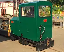 In December 1929, a 4 ft 8+1⁄2 in (1,435 mm) standard gauge 0-6-0 Diesel locomotive was obtained to work the Ravenglass-Murthwaite section. It was built by Kerr Stuart (works number 4421) and had a six-cylinder, 90 horsepower (67 kW), McLaren-Benz engine. Transmission was mechanical and final drive was by roller chains. In 1955 it was sold, through a dealer, to the National Coal Board for use at Wingate Grange Colliery, Durham. A new Dorman engine of 90 horsepower (67 kW) was fitted in 1960.[8] It is now preserved at the Foxfield Light Railway,[9] restored to original external condition, and was displayed at Ravenglass in the summer of 2000.